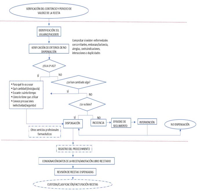 - Verificar criterios de no dispensación: el farmacéutico verificará el uso de otros medicamentos, la presencia de enfermedades concomitantes, la existencia de embarazo/lactancia, alergias, posibles contraindicaciones, interacciones o duplicidades.
