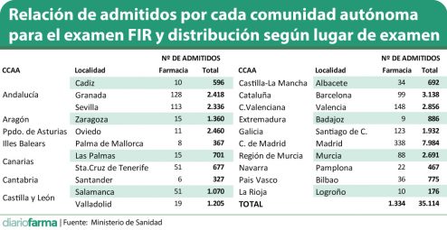 El Ministerio de Sanidad ha publicado los datos sobre los aspirantes admitidos a las 8.402 plazas de formación sanitaria especializada de la convocatoria 2018/19. En concreto, para Farmacia, el número de plazas convocadas son 267, a las que optan un total de 1.334 aspirantes, con lo que uno de cada cinco obtendrá plaza.