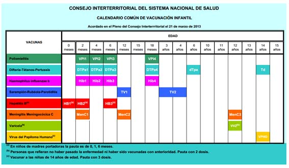 La Secretaria General de Sanidad del Ministerio, Pilar Farjas, en febrero de 2013 declaró: “La elaboración del calendario único había entrado en su recta final y estará listo antes de verano para comenzar su implementación en 2014”