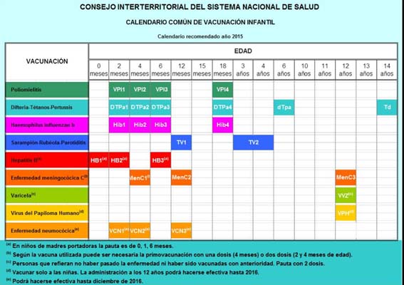 En enero de 2015 el CISNS acuerda un nuevo calendario de vacunación en el que entre otras modificaciones se incluye la vacuna anti-neumocócica conjugada y dan de plazo hasta 2016 para que las comunidades lo vayan implementando.