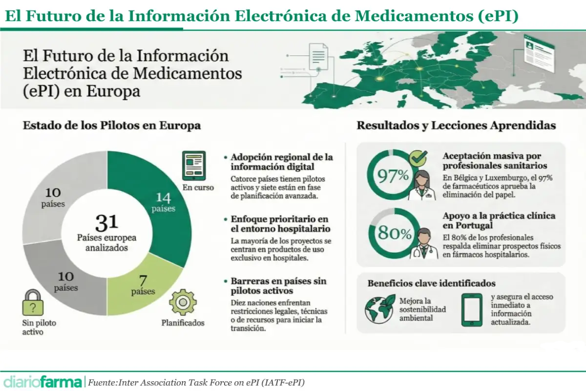 En concreto, España llevó a cabo un proyecto piloto nacional de ePI para medicamentos de uso hospitalario, iniciado en enero de 2022 y concluido en junio de 2024, bajo la coordinación de la Agencia Española de Medicamentos y Productos Sanitarios (Aemps). Aunque los resultados finales aún no han sido publicados oficialmente, el informe europeo recoge una valoración global positiva por parte de los profesionales sanitarios participantes.