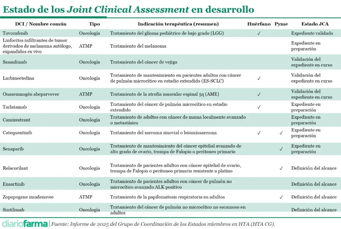 El principal hito de 2025 fue la puesta en marcha de 13 evaluaciones clínicas conjuntas de medicamentos, en línea con la aplicación escalonada del reglamento. Los procedimientos se centraron en nuevos principios activos en oncología y medicamentos de terapias avanzadas, los dos ámbitos priorizados en esta primera fase.